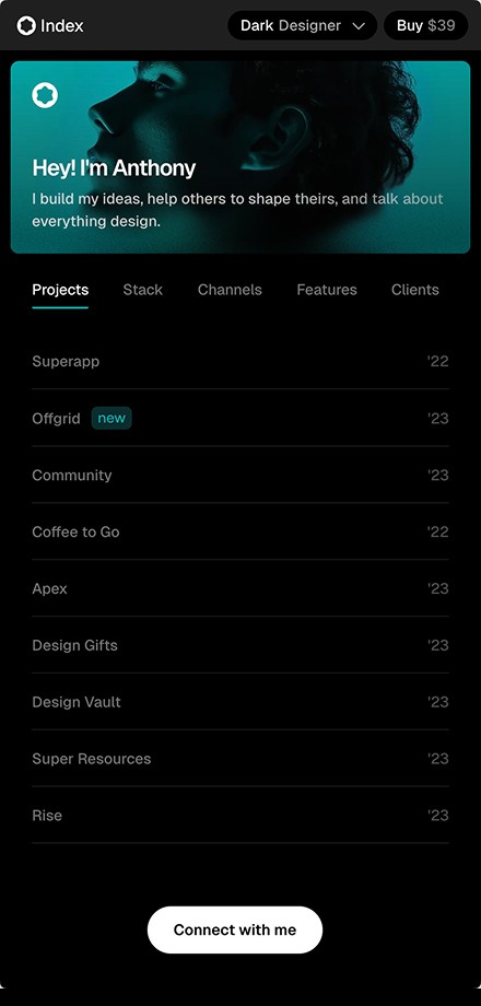 Indexy is just a great template. Simple. But I needed something that looked good to list my projects.
